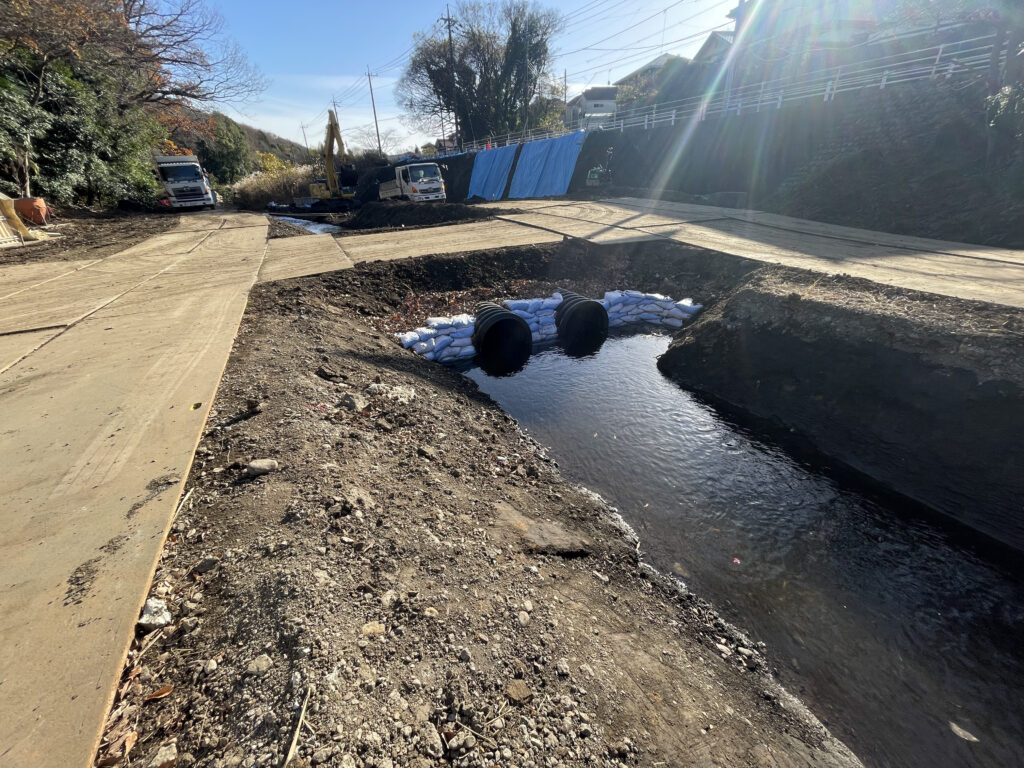 仮設河川 2024 3/12 2024年7月13日 公共工事 関連記事 下水道工事(主な工種:本管・汚水桝・マンホール工・舗装復旧) ボックスカルバート設置工事 水路補修工事 林道歩道整備工事 交差点道路改良工事 護岸補修工事(主な工種:間知ブロック積工・かごマット工) ダム断面修復工事 汚水ます設置工事