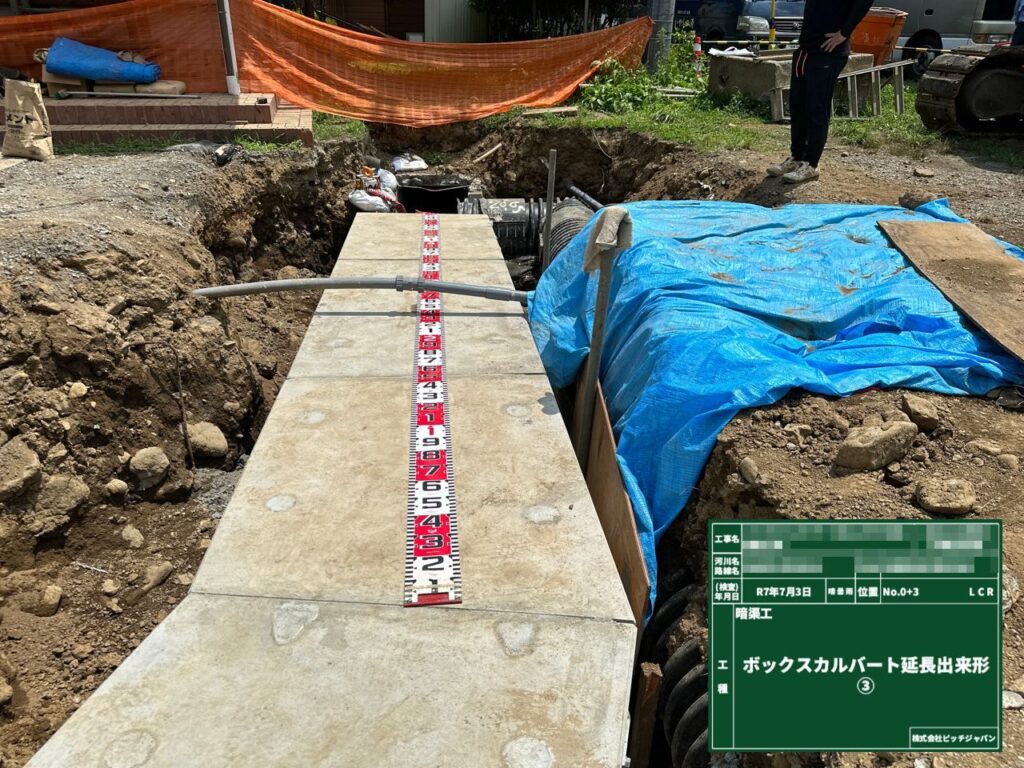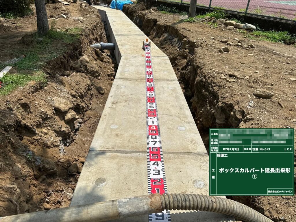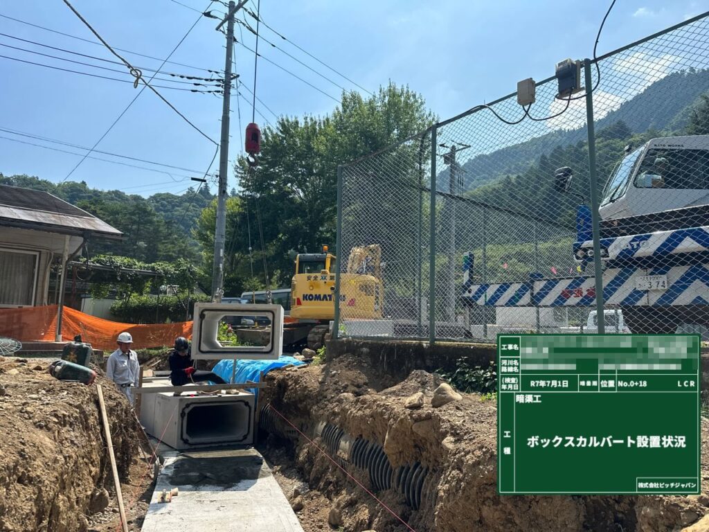 ボックスカルバート設置工事 2025 8/23 2025年8月23日 公共工事 関連記事 下水道工事(主な工種:本管・汚水桝・マンホール工・舗装復旧) 水路補修工事 林道歩道整備工事 交差点道路改良工事 護岸補修工事(主な工種:間知ブロック積工・かごマット工) ダム断面修復工事 汚水ます設置工事 市道舗装修繕工事