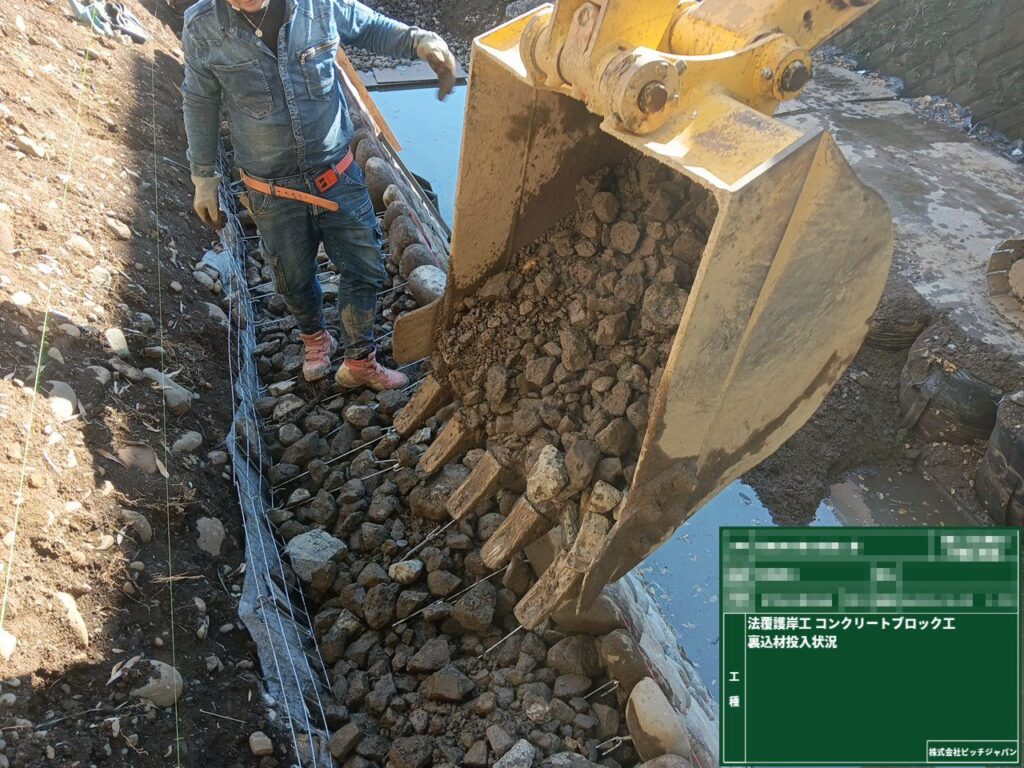 河川改修工事(背面ネット一体型空石積工) 2026 2/28 2026年3月19日 公共工事 関連記事 緊急落石及び木根撤去工事 防草シート設置業務 法面補強工事(災害防除工事) 敷地造成工事(窪地埋戻し) 下水道工事(主な工種:本管・汚水桝・マンホール工・舗装復旧) ボックスカルバート設置工事 水路補修工事 林道歩道整備工事